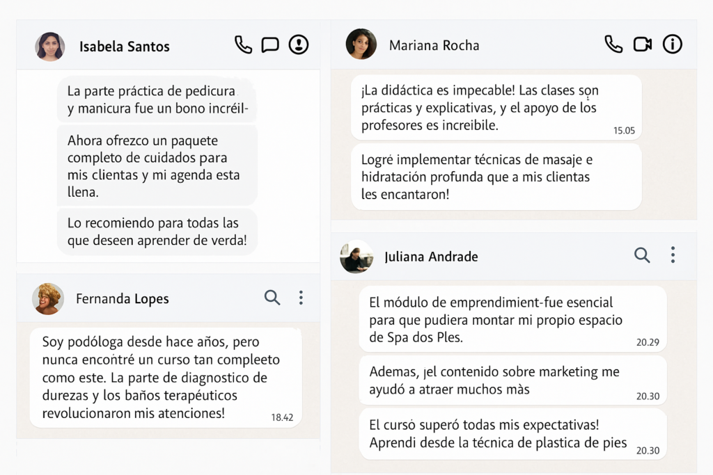 Este espacio fue creado especialmente para ti, ofreciendo soporte continuo, desafíos prácticos y el intercambio de experiencias con otros estudiantes. Conéctate con profesionales que también buscan dominar las técnicas de plástica y spa de pies, comparte tus logros y mejora tus habilidades mientras aplicas nuevos tratamientos. Descubre innovaciones, intercambia consejos valiosos y fortalece tu práctica para destacar en el área de la estética y el bienestar.